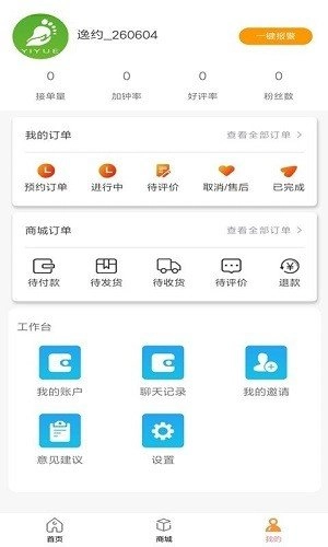 3、工作台,我的账户、聊天记录、我的邀请、意见建议。