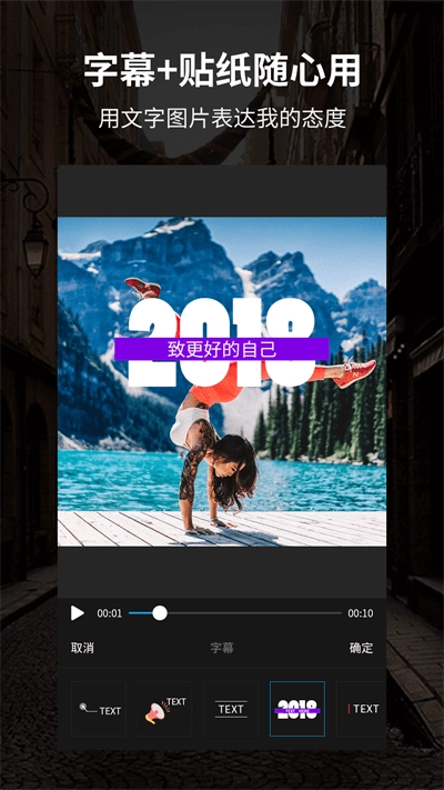 1、【自由创作】视频、照片、音乐、字幕、贴纸随意搭配,自由编辑。