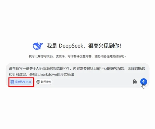 1、在12365网深度求索Deepseek,输入PPT的主题、大纲以及注意事项,然后选择【深度思考】功能。