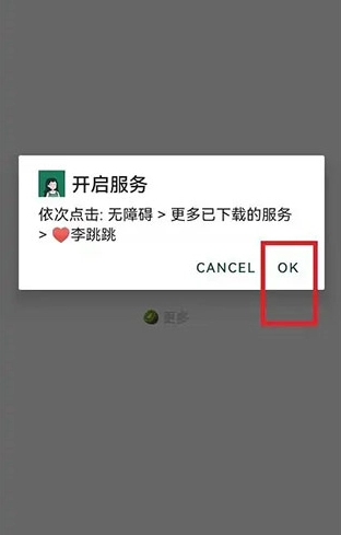 打开软件后,在软件首页找到并点击指定按钮,随即会弹出一个窗口,点击该弹窗里的【OK】按钮,就能进入手机的无障碍设置界面。