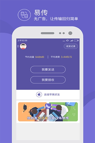 1、无需消耗流量或连接WIFI,和好友互传文件时不会产生任何流量或网络费用。