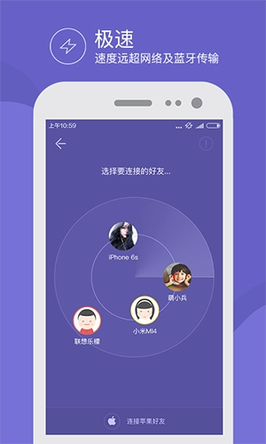 2、极速互传功能,传输速度可达蓝牙的60倍,一首歌一秒钟就能传完。