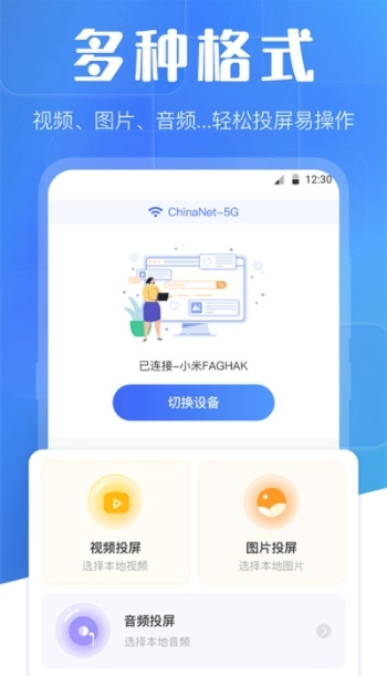 2、本地投屏功能:能够把本地存储的媒体内容一键投射至电视屏幕,兼容视频、图片、音乐等多种格式,借助大屏幕进行分享体验更为畅快。