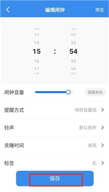 3、权限授予完成后,设置好闹钟的提醒方式、铃声以及贪睡时间,点击保存按钮即可成功添加闹钟。