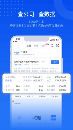 2、小蓝本》是一款能帮你轻松、快速获取商业信息的便捷企业信息查询工具!它主要面向投资、合作、企业招聘等场景,用户通过它可以快速查询企业征信情况,有效降低投资、合作、融资等环节的风险,一部手机就能掌握企业的全面信息。