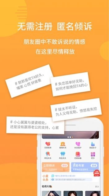 2、随时随地,开启倾诉,每天都可以想说就说,得到更多专业的建议;