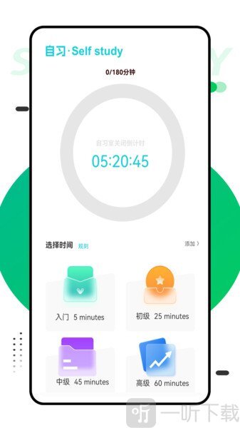 2. 有助于提升用户的专注力,用户只需进入自习室页面,选择计划专注的时长即可开启学习,从而完全远离外界的干扰。