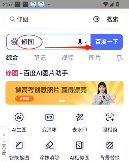1.在百度中搜索修图,在搜索结果中第一个就是百度照片助手入口
