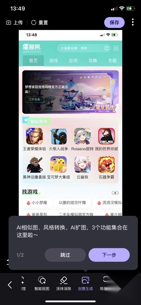 涂抹消除:用画笔涂抹不需要的元素,AI自动填充背景。