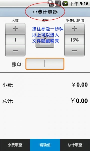 1.伪装机制别具一格:完成安装后,文件隐藏精灵会自行伪装成一款普通的小费计算器,唯有在计算器界面长按名称,方可真正激活软件的核心隐藏功能,巧妙地规避了他人的留意。