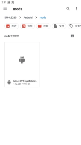 8、找到之前设置好的文件夹,点击安装修补的apk文件即可。