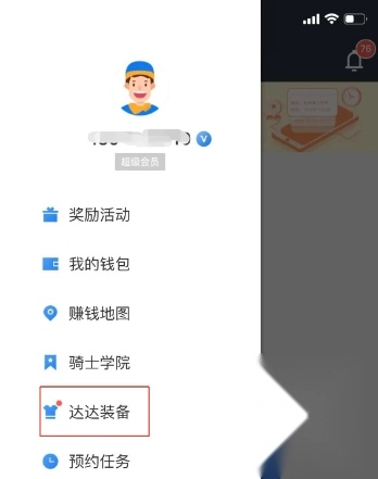 3.装备:您还需要准备好相关装备,例如配送餐饮订单必需的餐箱,达达服装。在达达秒送骑士中,在个人中心界面,点击达达装备,然后进入达达商城,在达达商城即可购买。