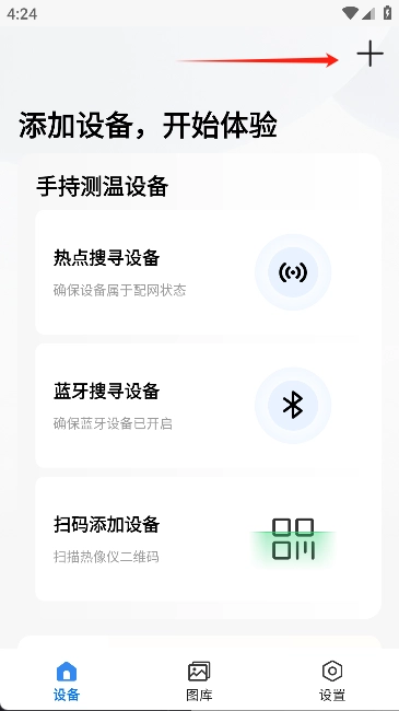 2. 打开应用后,按照提示点击“+”号添加设备。