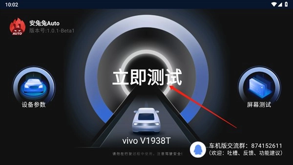 1、在本站安装好安兔兔车机版,安装完毕后打开软件,点击“立即测试”按钮,即可进行跑分程序。