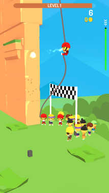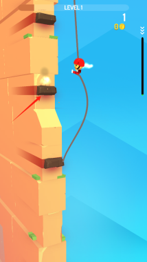 在游戏里,按住屏幕时角色会顺着绳子下滑,最终落在某个点位上。