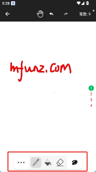 2.然后就可以在画布里当纸质草稿纸使用了,在底部你可以选择画笔、颜色、橡皮擦