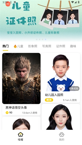 哇喔相机或者打开小程序,找到证件照模版即可使用。