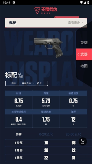 4. 点击武器选项,可以查看各类武器的性能参数,如射速、伤害值等。