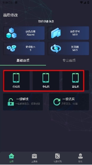 2. 进入首页后,于基础画质板块挑选自己的机型。