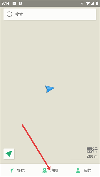 1、点击底部的【地图】选项进入对应页面后,能看到顶部的【搜索】栏以及显示为【惠行-200m】的位置标识。