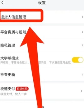 然后,我们进入到设置界面后,点击上方的提货人信息管理。