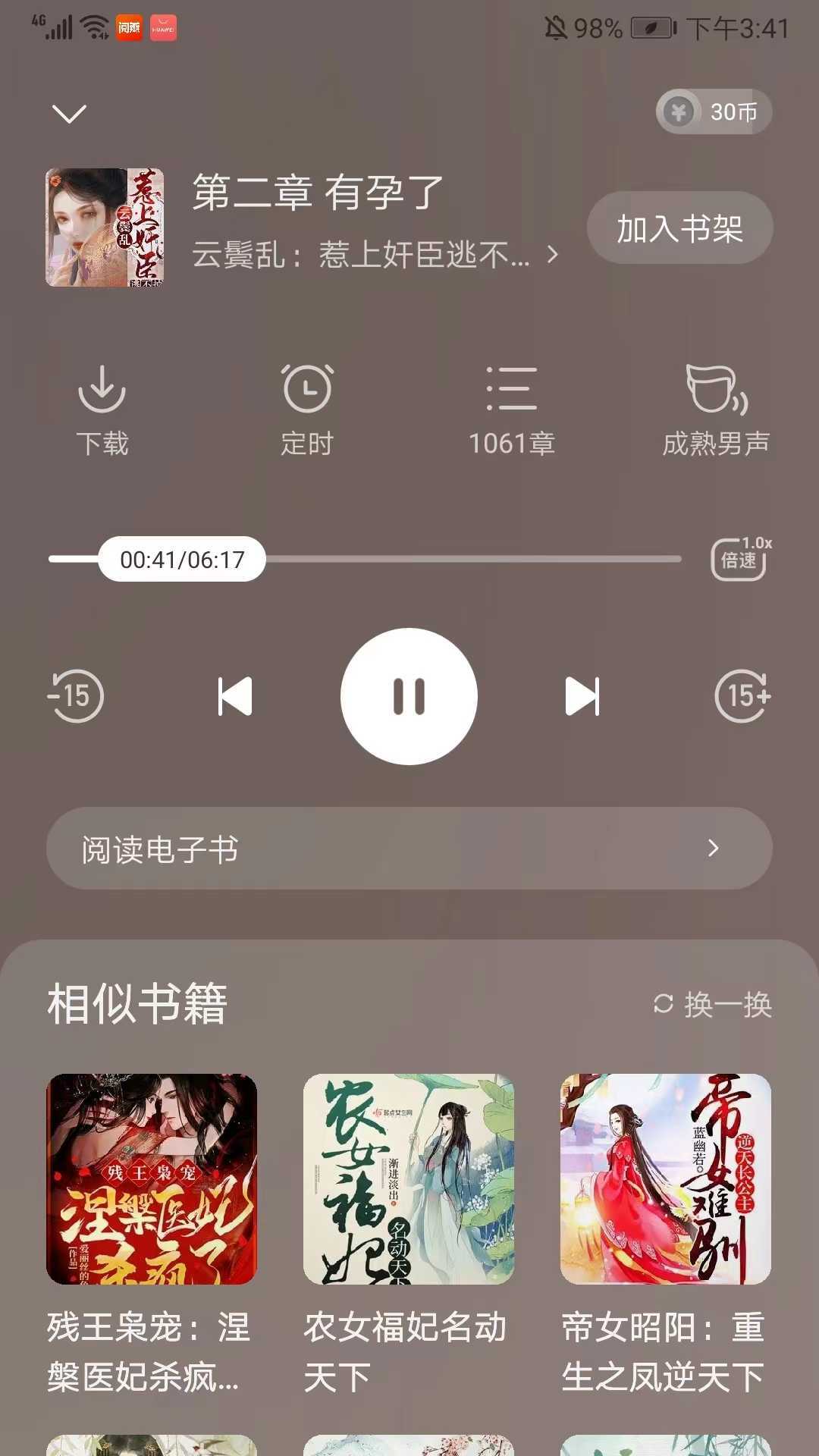 7.要是阅读感到疲惫了,我们也能切换到听书模式,去体验一番不同的感受。