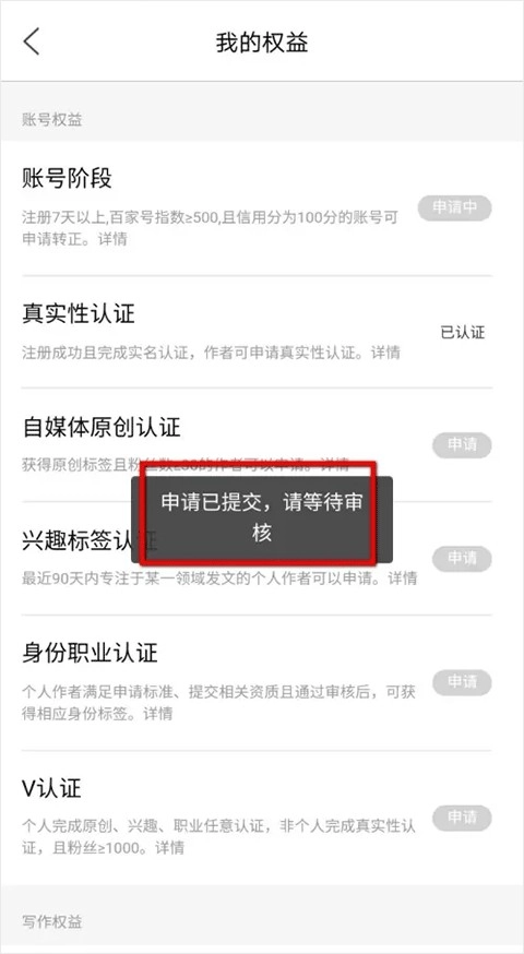 4、点击申请成功以后就会提示正在审核当中,等待审核完成即可完成转正。