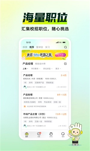应届生求职网最新版App是一款专为大学应届毕业生及在校生设计的求职招聘服务平台,提供实时更新的名企校园招聘信息,确保用户能够及时、准确、全面地掌握校园招聘动态,功能涵盖校园招聘、名企实习、宣讲会、招聘会信息、职业测评、求职资讯和就业辅导等内容,帮助用户了解各类实习招聘信息,参与校园宣讲活动,并获取有用的招聘知识和技巧。