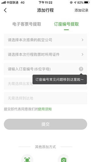 3、有两种方式可以添加,可以用票号或者订票6位码来添加