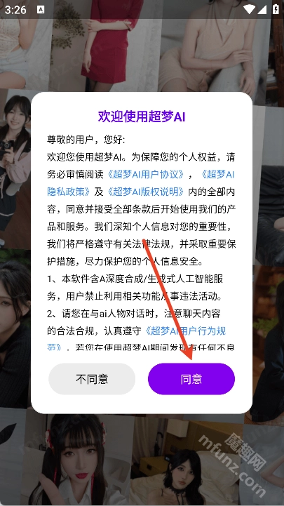 1、打开超梦AI软件点击同意