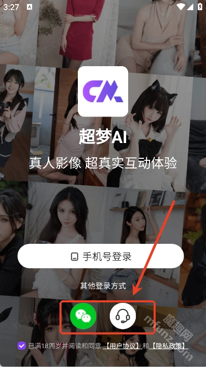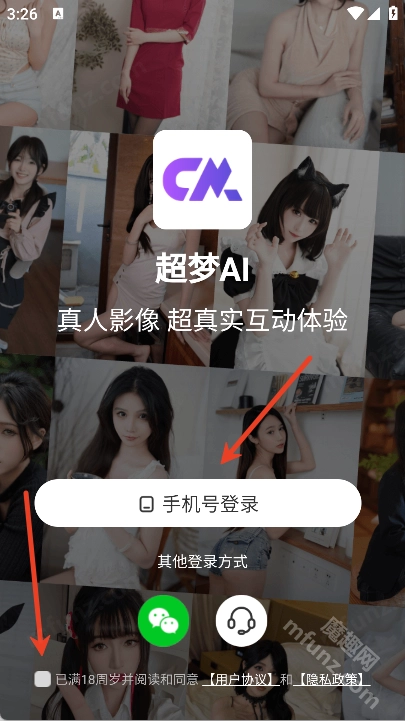 2、勾选协议,点击手机号登录