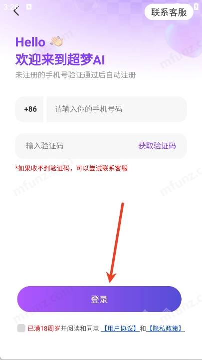 3、输入手机号和验证码点击登录即可(未注册的手机号验证通过后自动注册)