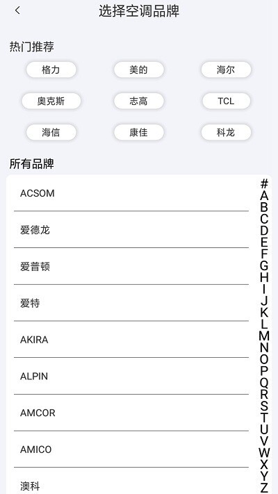 3、用户可在此绑定不同品牌的空调设备,随时通过手机实现智能操控。
