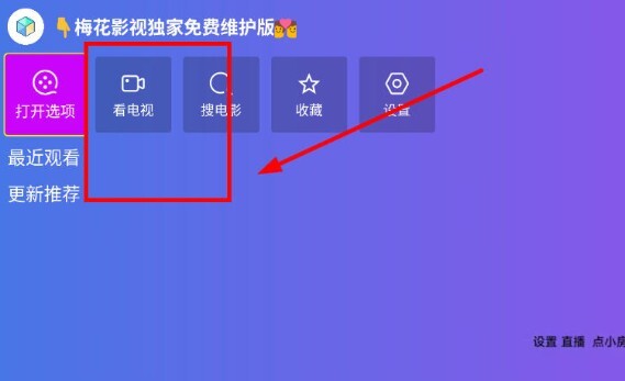 2、在首页挑选观看的方式,既可以选择看电视,也可以选择搜索点播