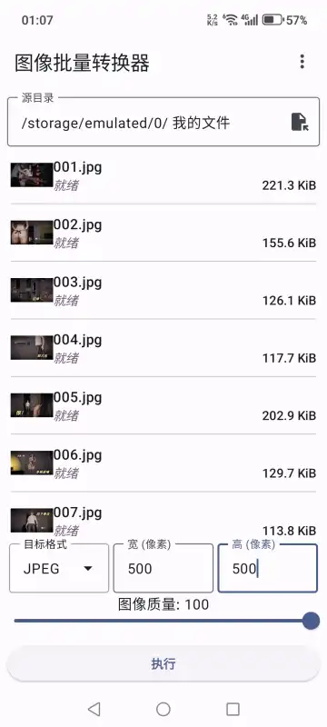 完成格式与尺寸的设置后,点击“执行”按钮就能开展转换操作。