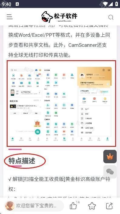 3、点击进入就可以看到对应软件的特征和相关信息以及截图