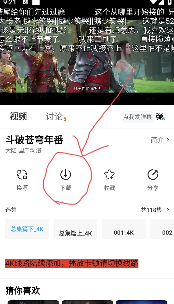 5、选择剧集,如第一集,点击001-4k,或点击全部。