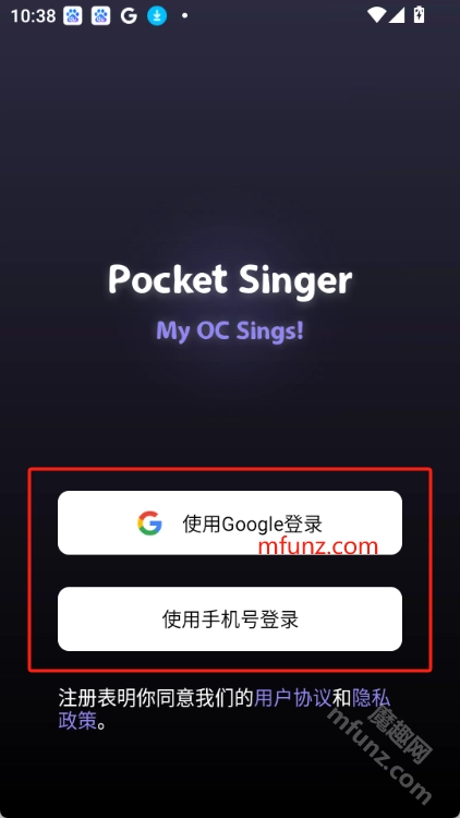1.pocket singer打开后可以使用谷歌账号或手机号登录