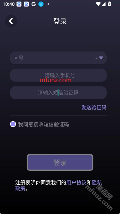 3.然后输入手机号和短信验证码,勾选我同意接受短信验证码,最后点击登录即可。