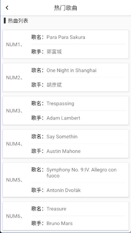 3、还具备热门歌曲的在线查看功能,用户能够挑选不同的歌曲榜单来进行浏览。