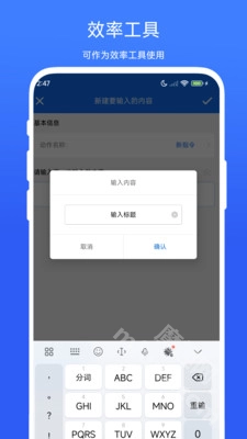 批量输入助手是一款提升手机操作效率的批量传输文件的工具。这个批量输入助手软件支持批量处理各种输入任务,无论是文字、数据还是命令,都能轻松应对。尤其是在办公过程中需要传输多个文件或者数据的时候使用批量输入助手安卓版能够提升很大的效率,让你的工作更加便捷,快速完成各项任务!