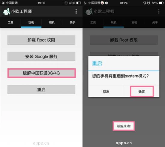 6、在玩机选项下点击【中国联通3G/4G】,提示成功后重启手机。