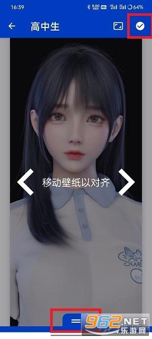 5、接着会进入壁纸设置页面,通过左右滑动来调整壁纸的显示效果,点击页面下方的按钮能够设置更多相关功能,最后在页面右上角点击【确定】按钮即可应用该壁纸。