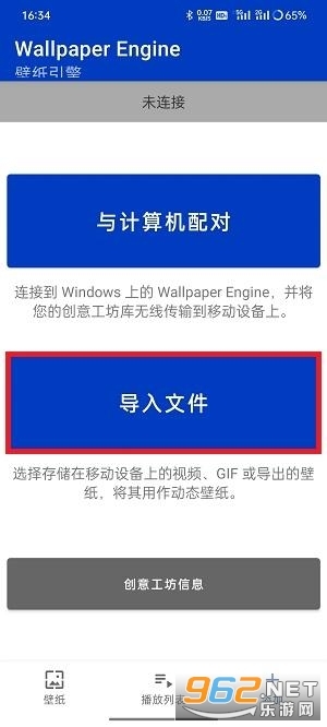 2、在手机上打开壁纸引擎后,在首页点击右下角的【添加】按钮;