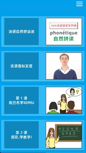 - 法语音标:用户可跟读外教老师的音标,学习音标基础。