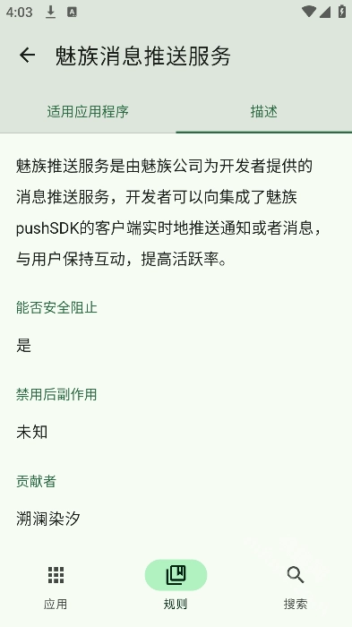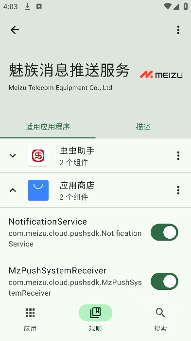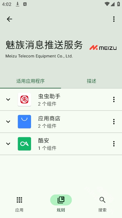 2.点击规则可以看到每个广告服务所匹配的应用