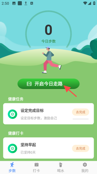 3、点击【开启今日走路】按钮,实时记录运动步数。