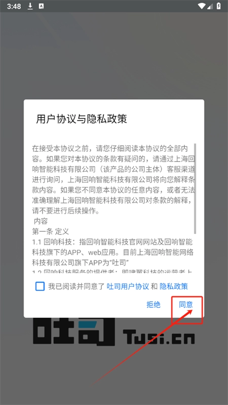 1、安装吐司ai绘画软件,同意用户协议和隐私政策后进入