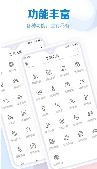 工具大全是一款可随身携带的多功能安卓工具箱。在这个工具大全软件当中包含了计算器、记事本、单位转换、天气查询等多种实用工具。无论是日常生活还是工作中工具大全手机版都能为您提供众多的帮助,满足大家各种不同的需求,是一款不可多得的效率工具!