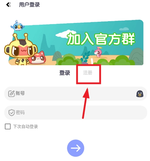 1、在手机上打开妙藏工具箱,进入到登录界面点击“注册”。